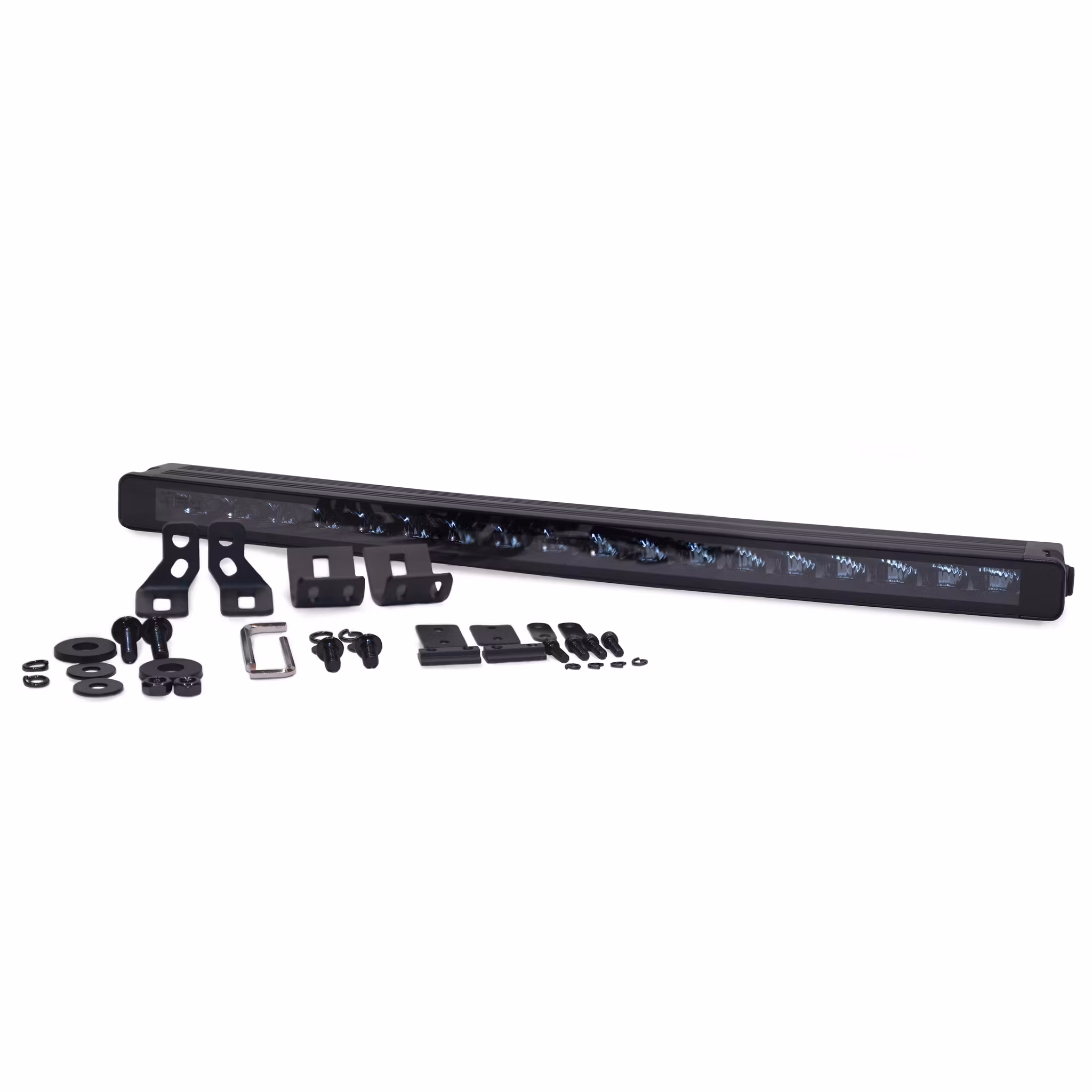 Slimbar Pro Curved är en kraftfull enkelradig LED-ramp som kombinerar imponerande ljusprestanda med en elegant, kurvad design. Den svagt böjda formen följer fordonets front på ett naturligt sätt och ger ett integrerat och stilrent utseende, samtidigt som den levererar effektivt ljus där det behövs som mest.