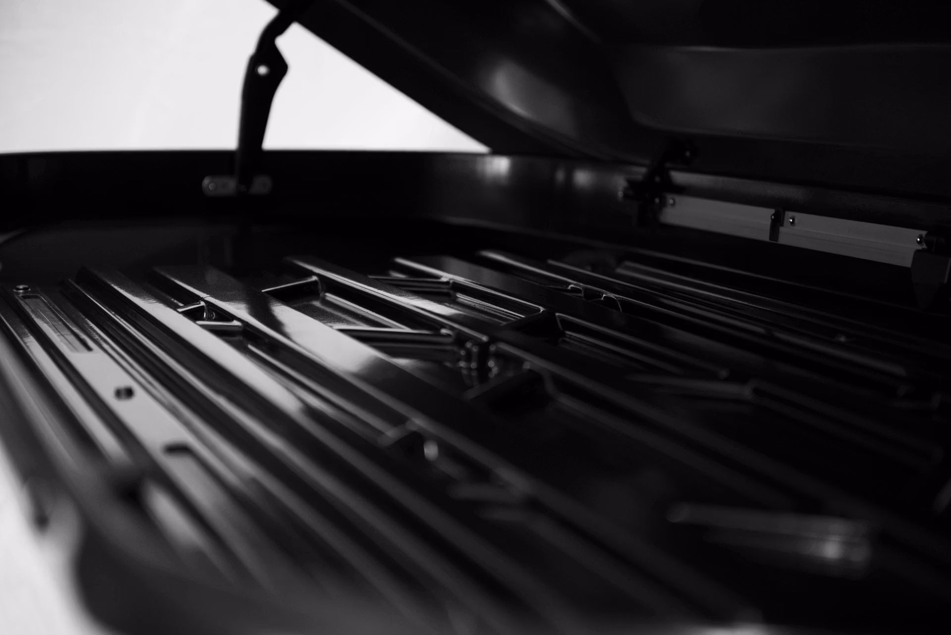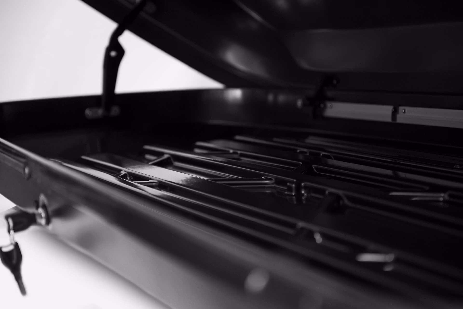 Takboxen kommer med mjukstängande gångjärn som medger öppning av boxen från båda långsidorna. Två rejäla lås ser till att boxen håller din packning säker.