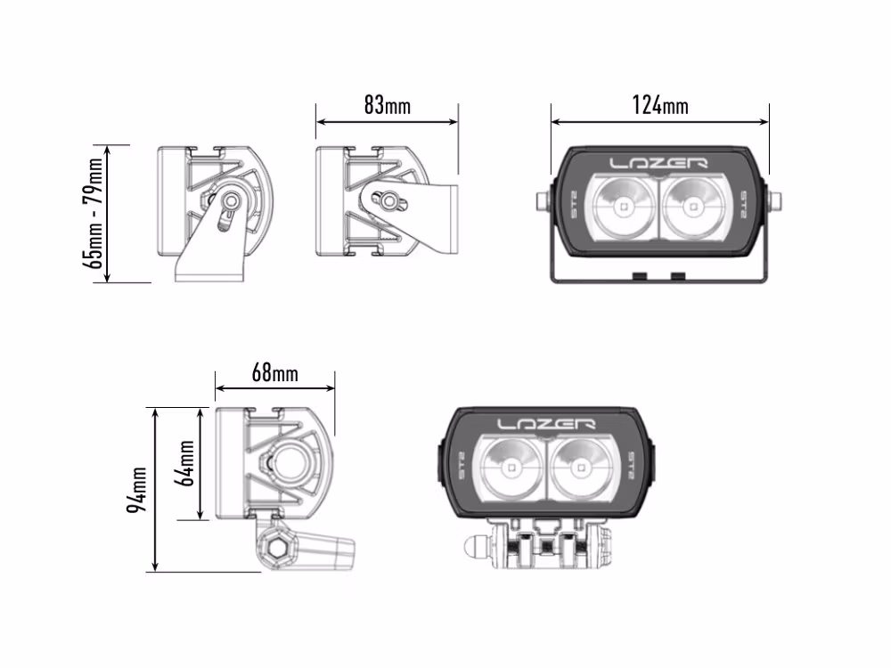 Lazer lamphus är tillverkade i strängpressad aluminium och är ECE-godkända till Reg 112, som är IP67 fullkomligt vattentäta och levereras med 5 års garanti. Dimensionen på ST2 Evolution är endast 124 x 64 x 68 mm och väger in på 430 g.